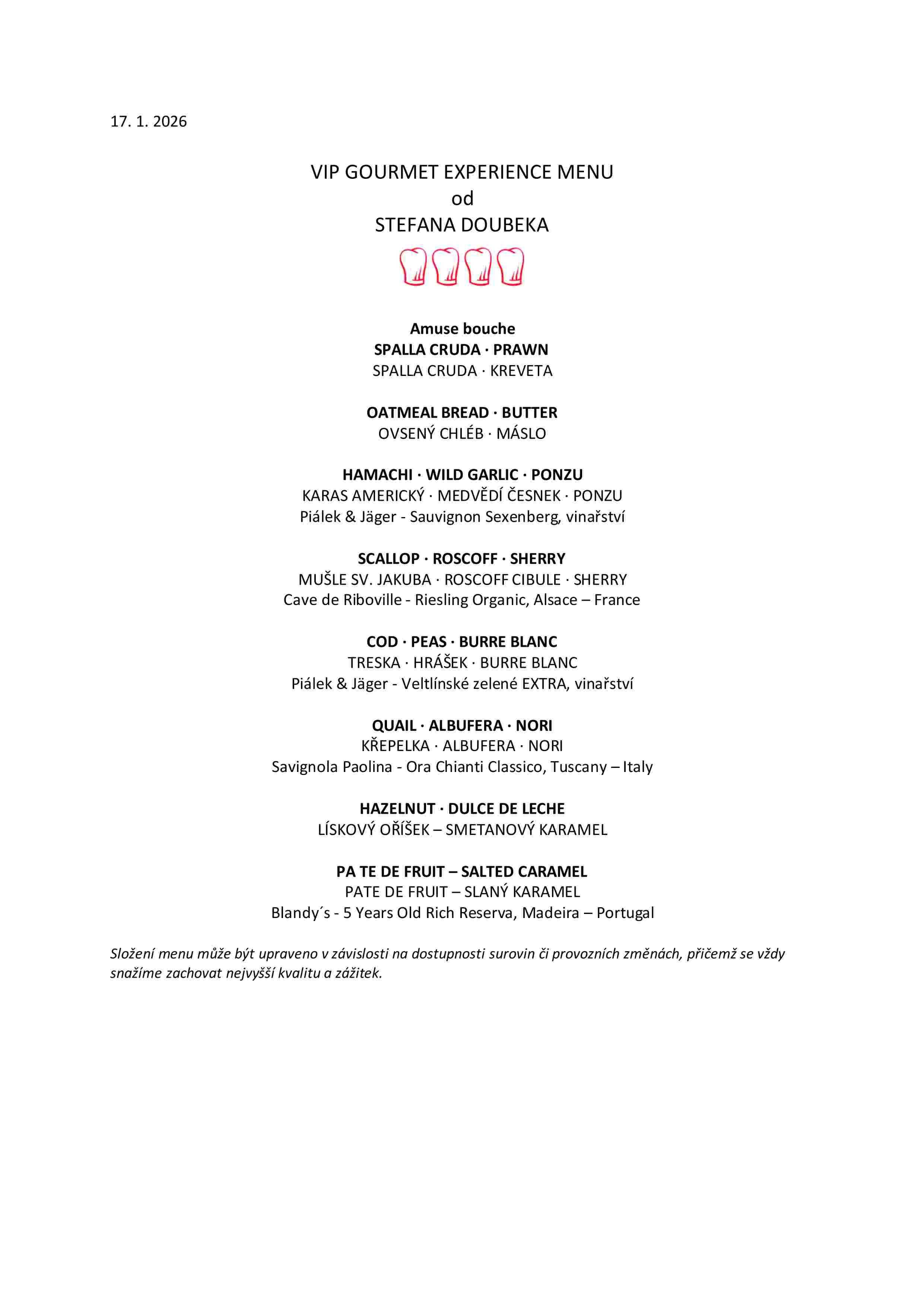 MENU Stefana Doubeka na 17.1.2026 ZDE!